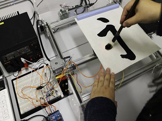 美しい文字を書けることは教養や品性に結び付き,大きな価値を持つと見なされている.しかしながら,そのような現状の中で,字の練習をする機会がないという人が多い.そこで,本研究では,書字の練習を支援するための装置を開発した.本装置は,小型のCNCフライスのヘッド部分に設置した電磁石が磁石の入った筆を誘導する.磁力の強さやヘッドの移動速度を調整することで,美文字を書くために重要である筆圧,運筆速度,筆脈を習字の先生に手を添えて指導してもらっている感覚で学ぶことができる.