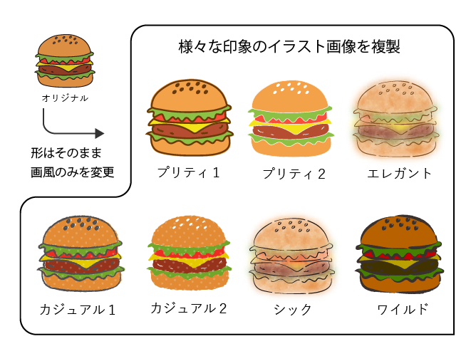 同じモチーフのイラストでも,表現の仕方の特徴や傾向(画風)の違いにより印象は大きく変わる.イラストを使用する際は与えたい印象に沿った画風のイラストを使用する必要がある.素材サイトは登録されている範囲でイラストを探す必要があるため,イラストレータは1つのモチーフに対して様々な印象の画風を登録することが望ましい.しかしながら,1つのモチーフに対して複数の画風のイラストを描くのはイラストレータ側に手間がかかる.そこで,本研究ではイラストレータが複数の印象のイラストを手軽に作成できるように,形以外の画風を構成する要素(画風要素)と印象との因果関係を感性工学で用いられるラフ集合理論により調査した.また,得られた印象ごとの画風要素が,形以外の画風要素として正しいかを確かめる検証実験を行い,いくつかの印象について形以外の画風要素を発見できた.