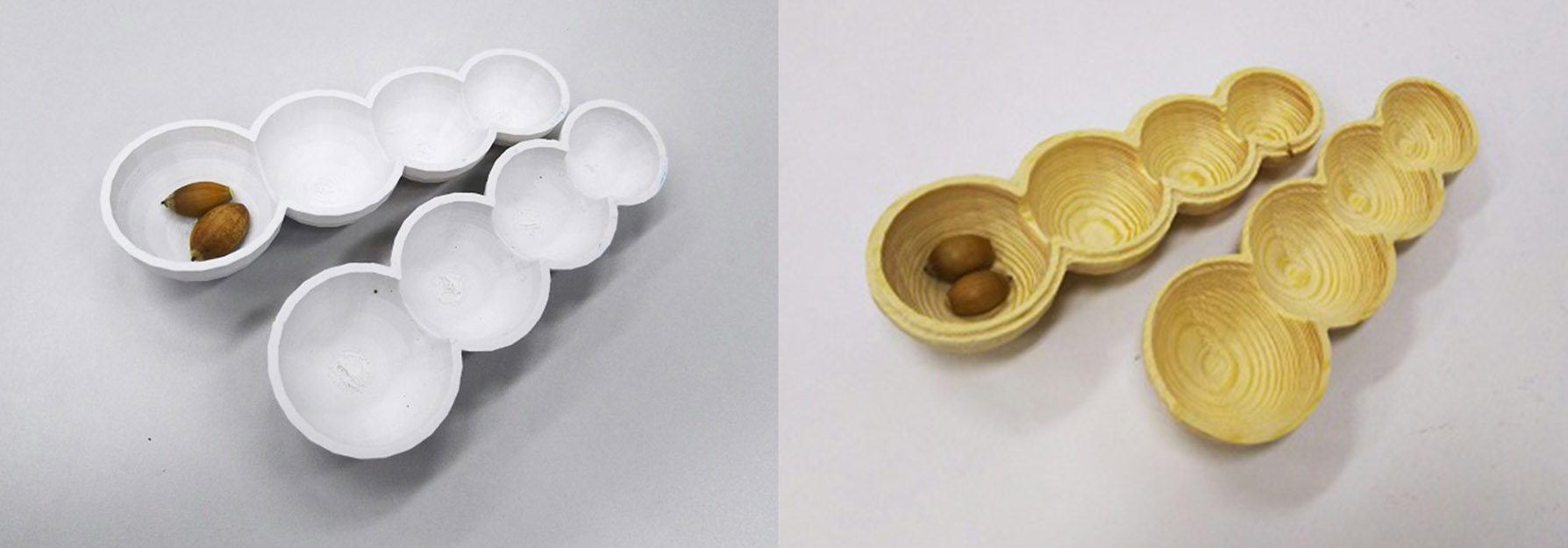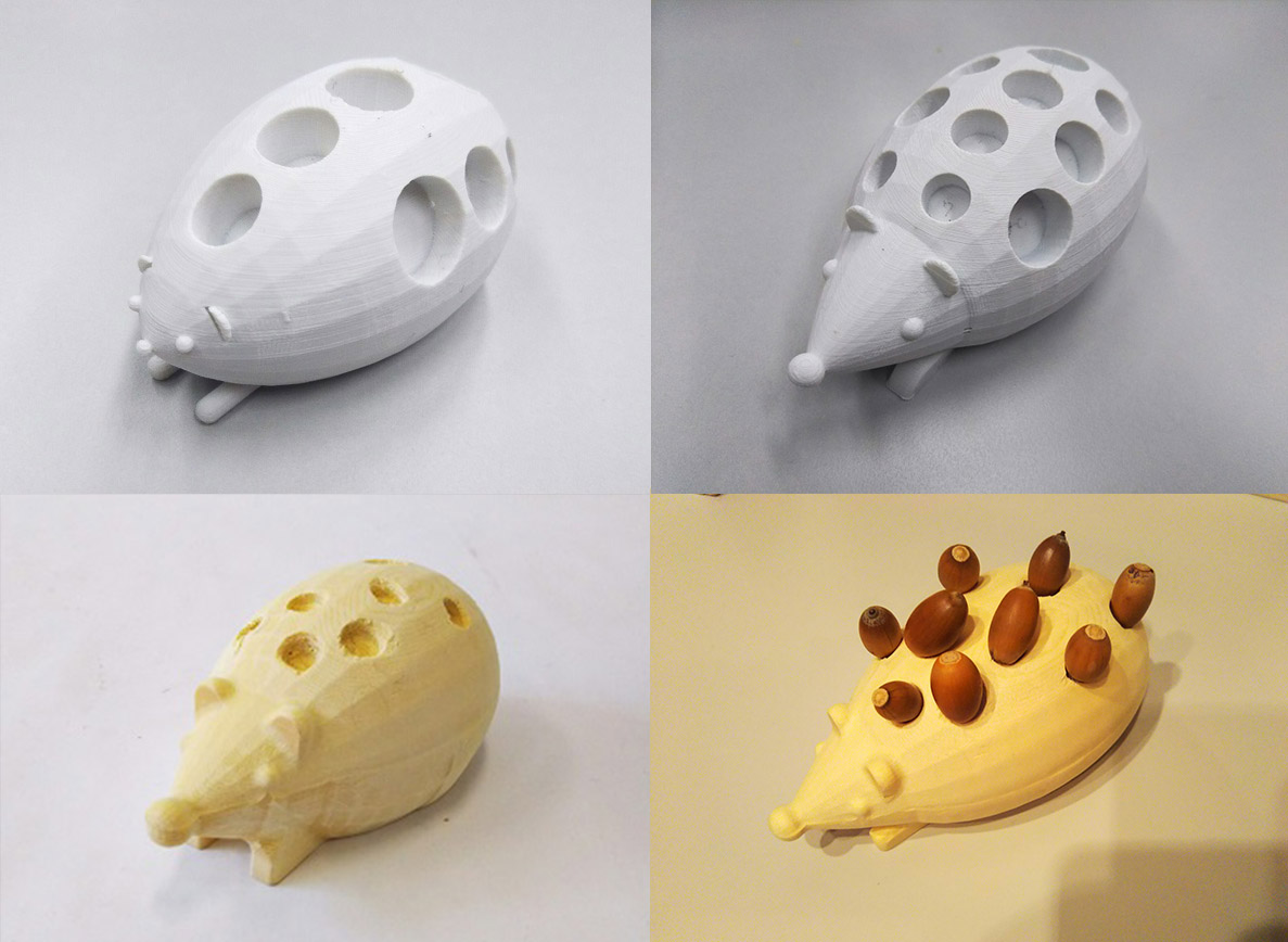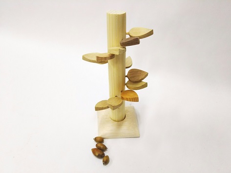 直接体験とは,自分の身体を通して実際に体験することである.直接体験は豊かな人間性や自ら学び考える力などの基盤とされ,運動能力の向上や感性の発達など多くのことが期待されており、子どもの成長にとって非常に重要であるといえる.しかしながら,インターネットやゲーム機の普及,空き地の減少や公園でのボール遊びの禁止など,生活環境や遊び環境の変化により,子どもの遊び方も変化してきており,外遊びが減少している.そこで,本研究では,,直接体験の機会を増加させることを目指し,子どもを外遊びに誘導するおもちゃ「もりのはこ」を制作した.もりののはこは,外遊びを生み出すおもちゃ箱コンセプトとし,様々な季節の素材を使って外で遊ぶことのできるおもちゃのシリーズである.今回は,秋にどんぐりで遊ぶためのおもちゃとして,ガラガラ,どんぐりねずみ,どんぐりの木,の3つを制作した.これらのおもちゃは3Dモデルと3Dプリンタによる造形でプロトタイピングを繰り返し,サイズや形状を決定した.また,おもちゃの最終完成バージョンはCNCフライスを用いて大きな木片から切り出して制作しているため,遊びながらも木の香りやぬくもりを感じられるようになっている.