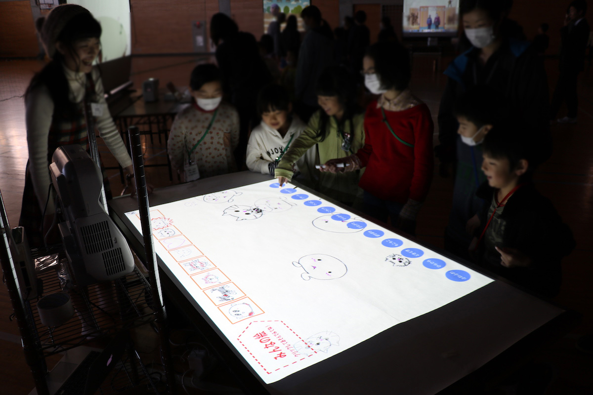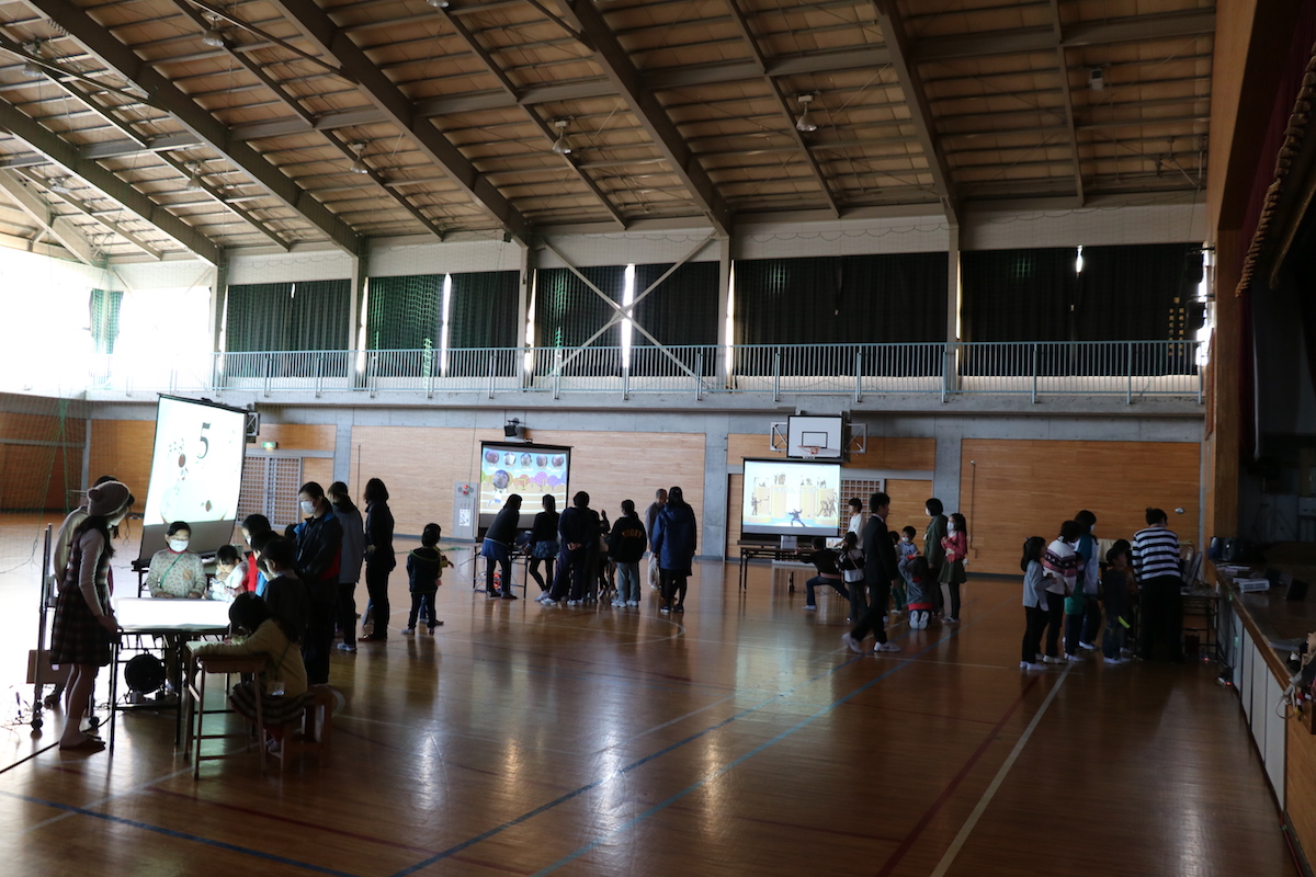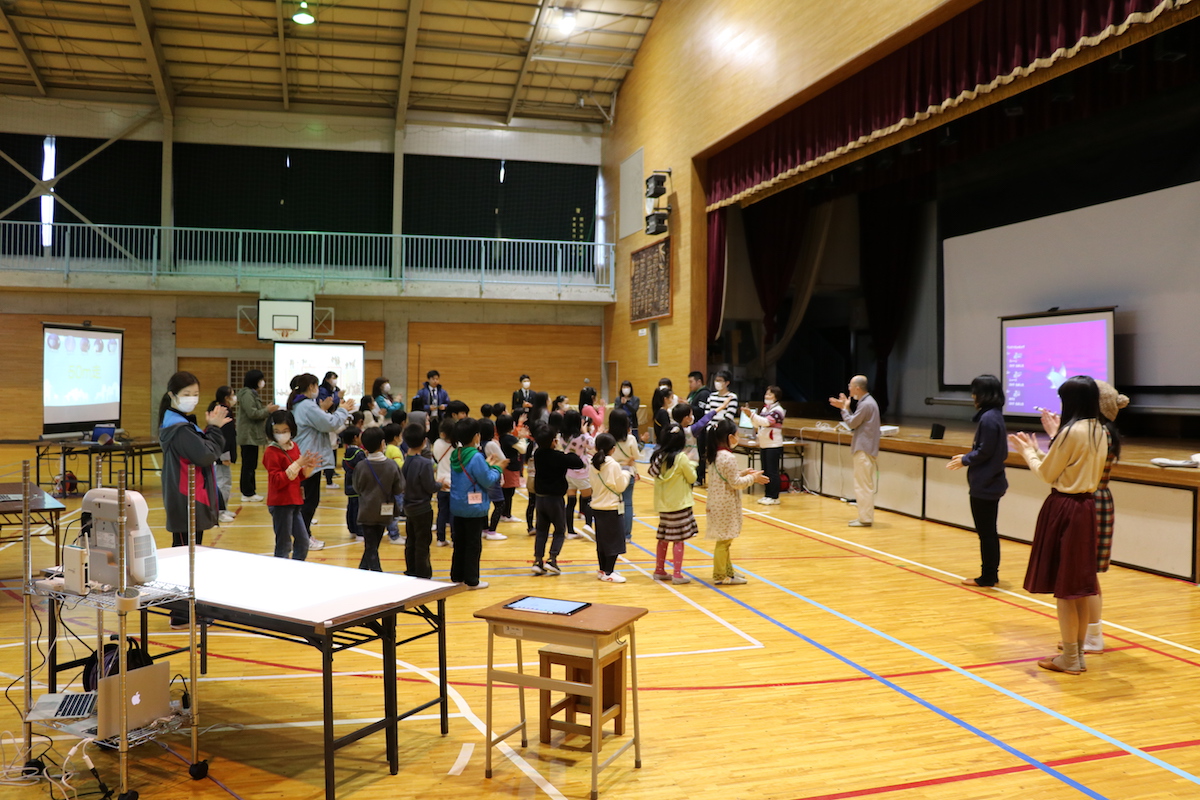 大和町立小野小学校での放課後メディア体験 Category: Social activity 活動概要 大和町立小野小学校の体育館にて,メディアアート体験イベントを開催した.本イベントには小嶋研究室と合同で実施し,新しいお絵描き体験ができる作品やKinectセンサを応用した運動連動ゲームなど,両研究室の卒業研究成果などを応用した作品を展示した.授業を終えた約40名の小学生たちが普段とは異なる放課後の遊びを体験し,目を輝かせていた. 開催概要 開催場所:大和町立小野小学校 開催期間:2016年11月21日 ギャラリー