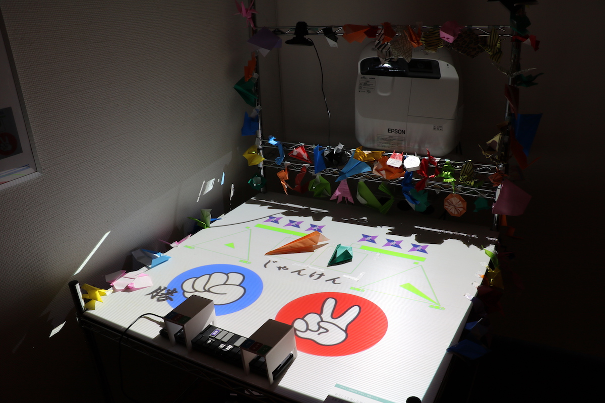 本研究では,折り紙を折る行為を楽しむための支援ツールを開発した.本ツールでは,折り終えた完成形と,そこに至るまでの折る行為のそれぞれにデジタル技術による支援を組み込んだ.形や模様が変わるという折り紙本来の面白さを伝えるために,本ツールでは折り紙の上に折り方の手順を投影して説明する機能や,折り紙による対戦ゲーム機能を実装した.本ツールにより,折り方が分からない場合でも気軽に折り紙をする事を可能にし,折る毎に異なる画像を表示する事により,折る事自体に興味を持たせる効果が期待できる.
