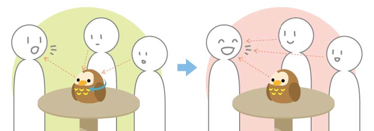 人同士が円滑に会話を進めるためには,発話者の方へ意識を向けることが重要である.我々は,人の持つ共同注意の心理特性を利用することで,発話者に注意を向けることができると考えた.本研究では音の情報を視覚的に表現し,共同注意を促すコミュニケーション支援ツールおとみどりを開発した.ユーザはおとみどりを見ることで,どこから音が鳴っているのか,どのくらいの高さの音なのかといったことを視覚情報として感じ取ることができる.
