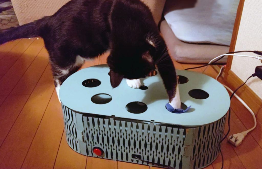 飼い主が外出する際,ペットは留守番を強いられる.このことに不安な飼い主は非常に多く,様々な対策が取られているが,既存のIoT製品は給餌等の世話目的の物が多く,遊びへの対策は不十分である.外出中にペットをペットシッタに預けることもできるが,知らない人に預けられたペットはストレスを感じることもある.本研究では,これらの課題を解決するため,遠隔で人とペットを繋げるおもちゃである「ne-connect」を開発した.ne-connectは,飼い主が遊ぶことのできない状況の猫と,動物と遊びたいと考えている人をマッチングするシステムで,猫用おもちゃとしっぽデバイスから構成される.猫用おもちゃはもぐらたたきを模したおもちゃで,人側のスマートフォンから遠隔操作されたモグラが上下に動き,猫の遊びを誘う.しっぽデバイスは人がスマートフォンに装着して使用するもので,猫がne-connectで遊ぶと連動してデバイスに装着された尻尾が揺れ,猫とその場で遊んでいる感覚を疑似的に得ることができる.ne-connectにより,飼い主の外出頻度が高くてもペットは楽しんで遊ぶことができ,動物と遊びたい人は何時でも遠隔でペットと遊ぶことが可能になった.